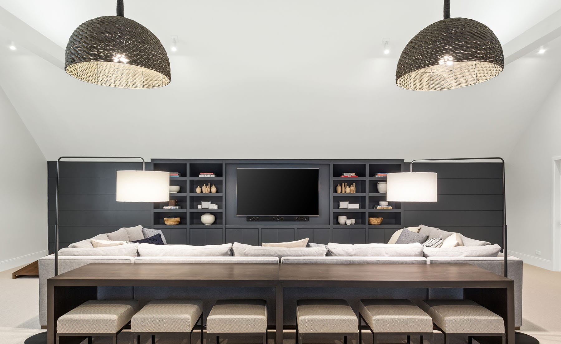 - Open Layout: Recognizing the clients’ wish for a spacious entertainment area, the home is designed with expansive galleries and interconnected rooms. This open design ensures guests can easily traverse the space, enhancing the home’s overall social atmosphere.