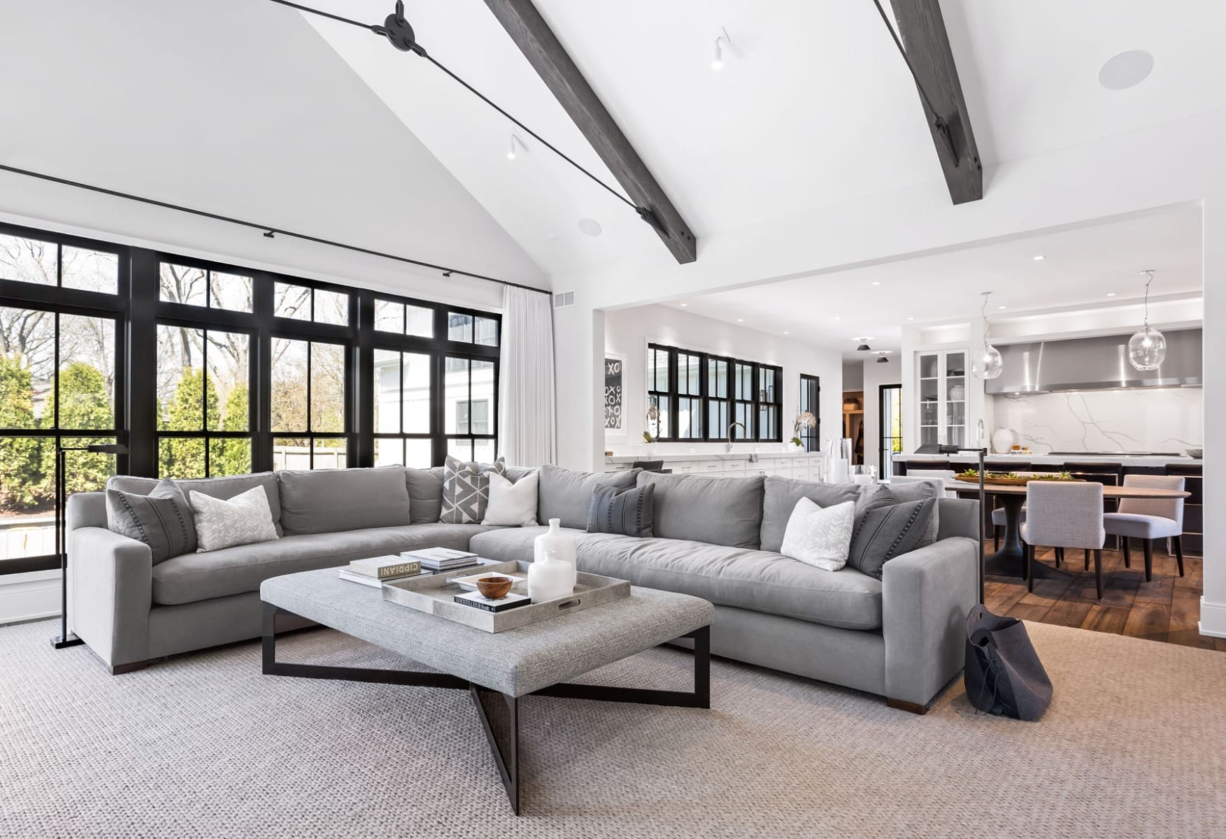 - Balanced Aesthetic: To encapsulate the blend of contemporary and traditional, the exterior showcases brickwork reminiscent of a Belgian farmhouse, moving away from the typical siding seen in modern farmhouses. In contrast, the interior spaces are marked by open, light-filled areas that are versatile, catering both to intimate family moments and larger social gatherings.