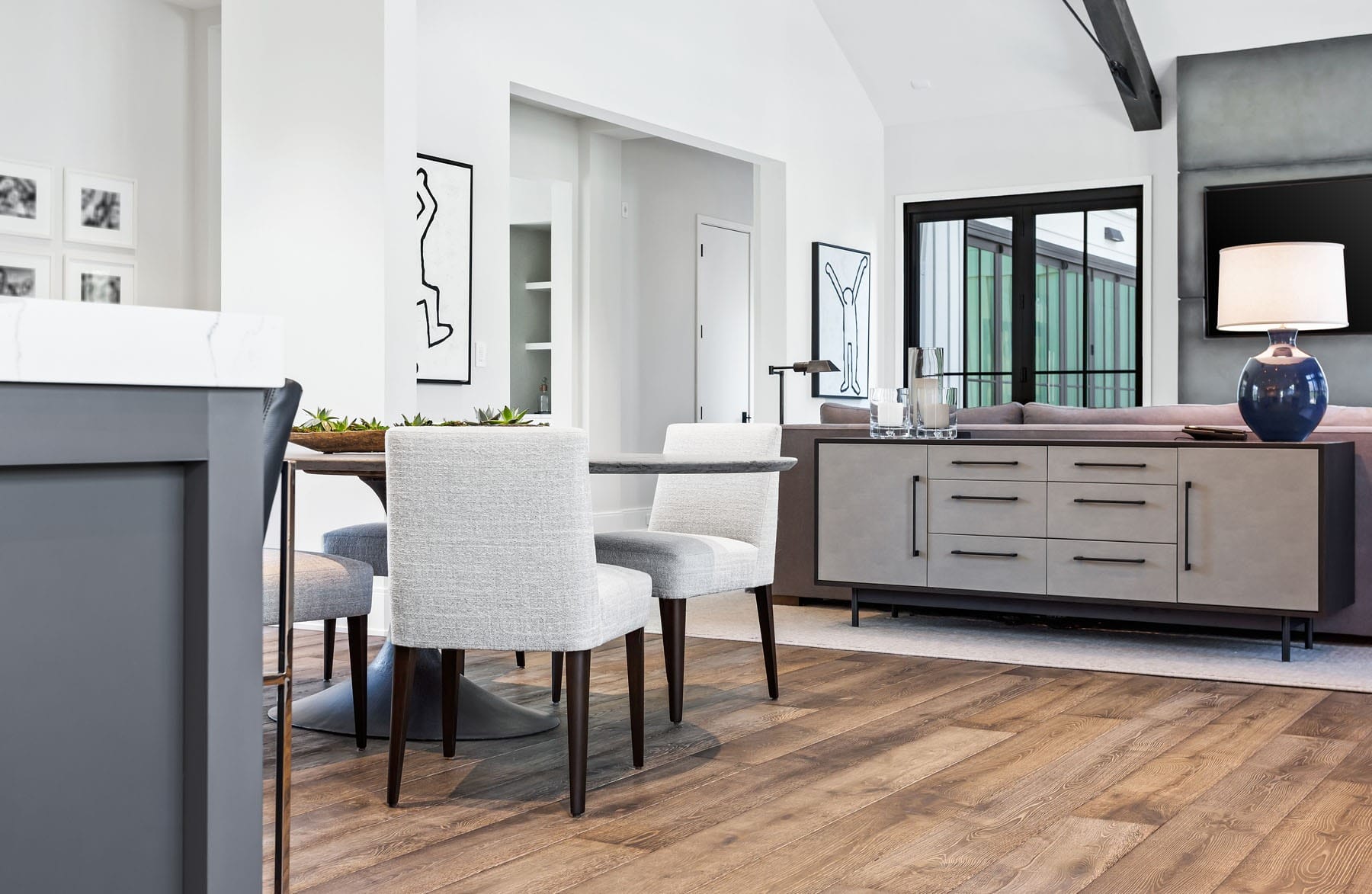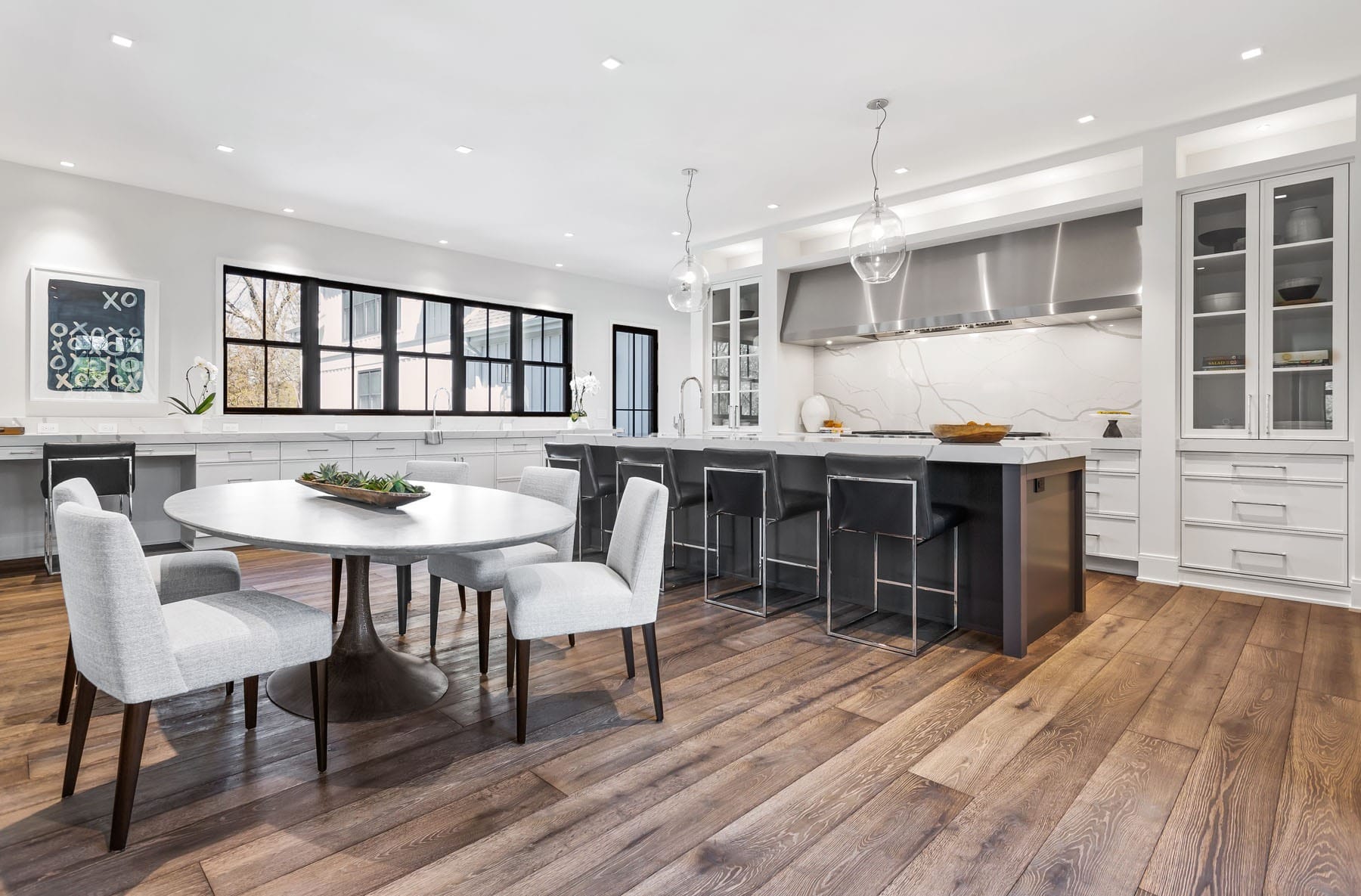 The clients had a clear vision of their dream residence: a spacious home that flawlessly blends the contemporary interior with a more traditional exterior, all while prioritizing natural light and outdoor integration. They aspired to reside in Winnetka, specifically desiring a larger lot that offered privacy and tranquility. The emphasis was on creating a balance; while the interior was to emanate a modern aura, the exterior needed to retain a more classical farmhouse appeal, inspired by the aesthetic of a Belgian farmhouse.