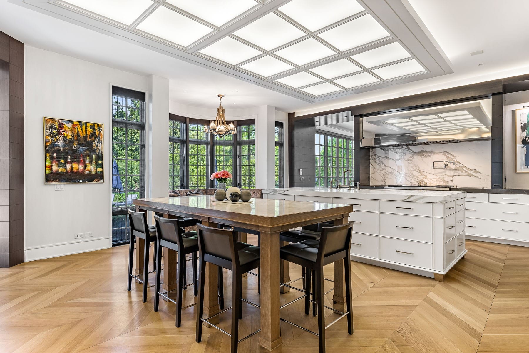 - Gourmet Spaces: The estate showcases an expansive kitchen and dining area, further complemented by a luxurious 1,000-bottle walk-in wine cellar and a deco-style billiards room.