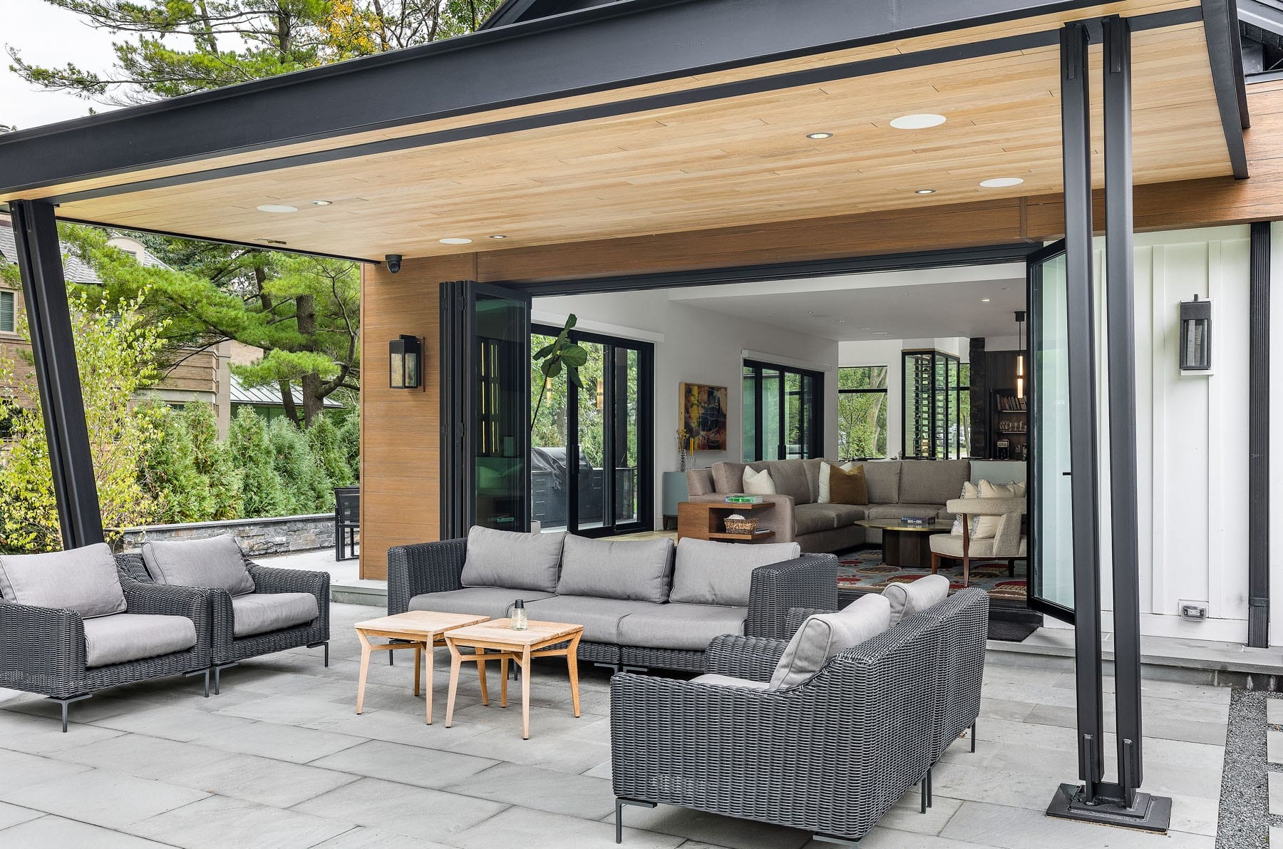 • Innovative Features: From rain chains adorning the front portico and an automatic pergola outdoors to folding glass wall exterior access, each element adds distinct character to the home.